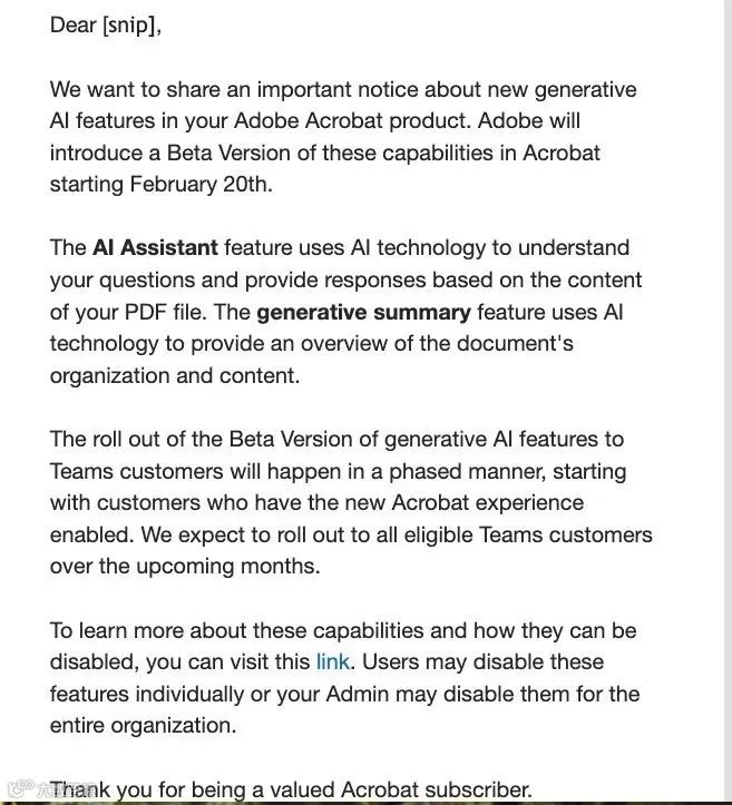 安全记者布莱恩・克雷布斯(Brian Krebs)最近曝料,称 Adobe Acrobat 和 Reader 应用中的 AI 会扫描文档,这引起了人们对隐私问题的警惕,尤其是敏感文档。