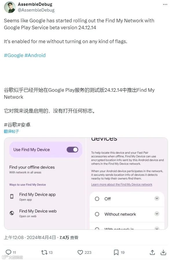 谷歌安卓“查找我的设备”网络开放测试,支持离线搜寻丢失设备