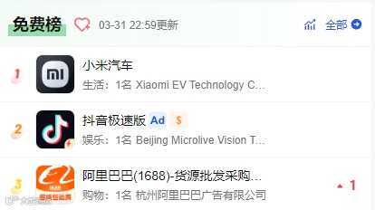 伴随SU7的走红与热销,这款《小米汽车》App也是涌入了大量国内用户,下载量骤增,并于3月31日登顶中国大陆地区App Store免费榜。