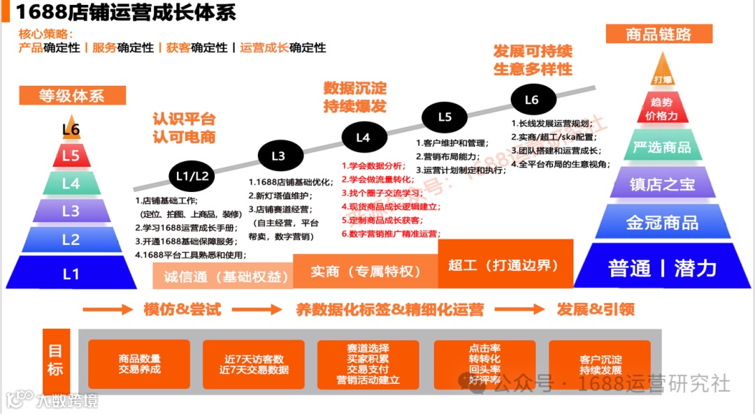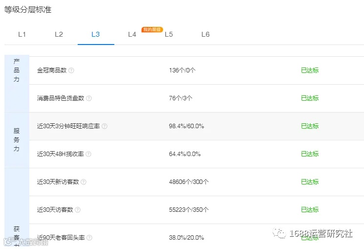1688店铺等级是店铺权重的重要数据支撑,建议至少达到L3以上。店铺等级不仅是阶段数据考核的结果,更是店铺流量质量承接的关键。