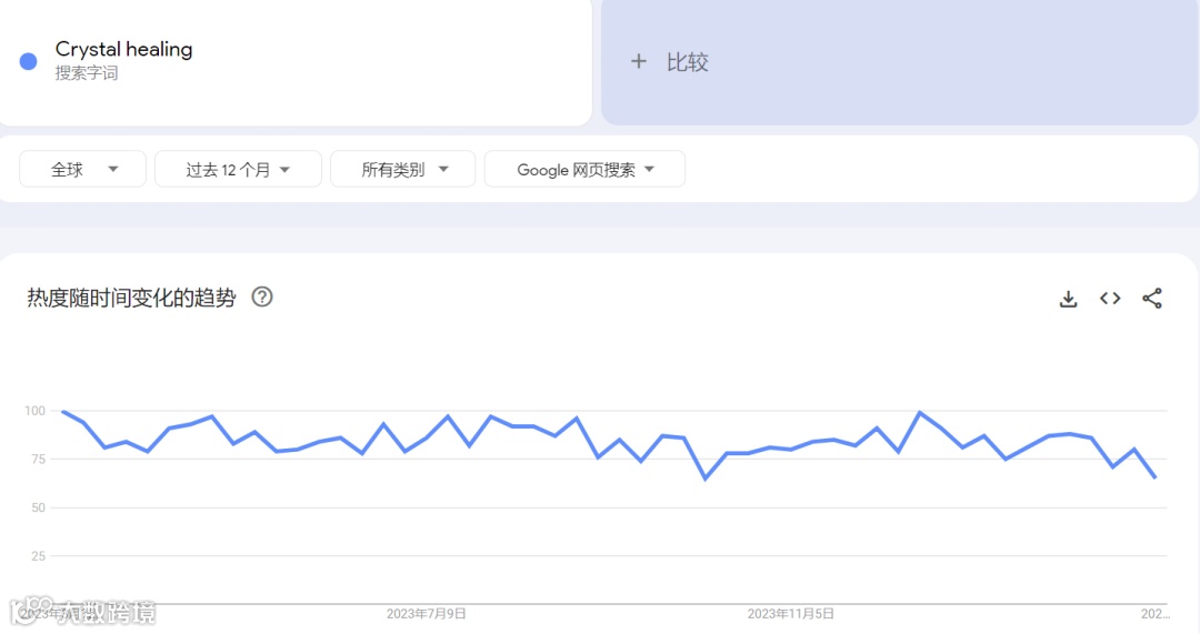 图源:谷歌水晶疗法作为一种替代医学的方法,在海外新闻媒体和社交平台大肆宣传的影响下,使用水晶疗愈的用户越来越多,身体健康意识增强也带动了水晶治疗产品需求量不断增加。