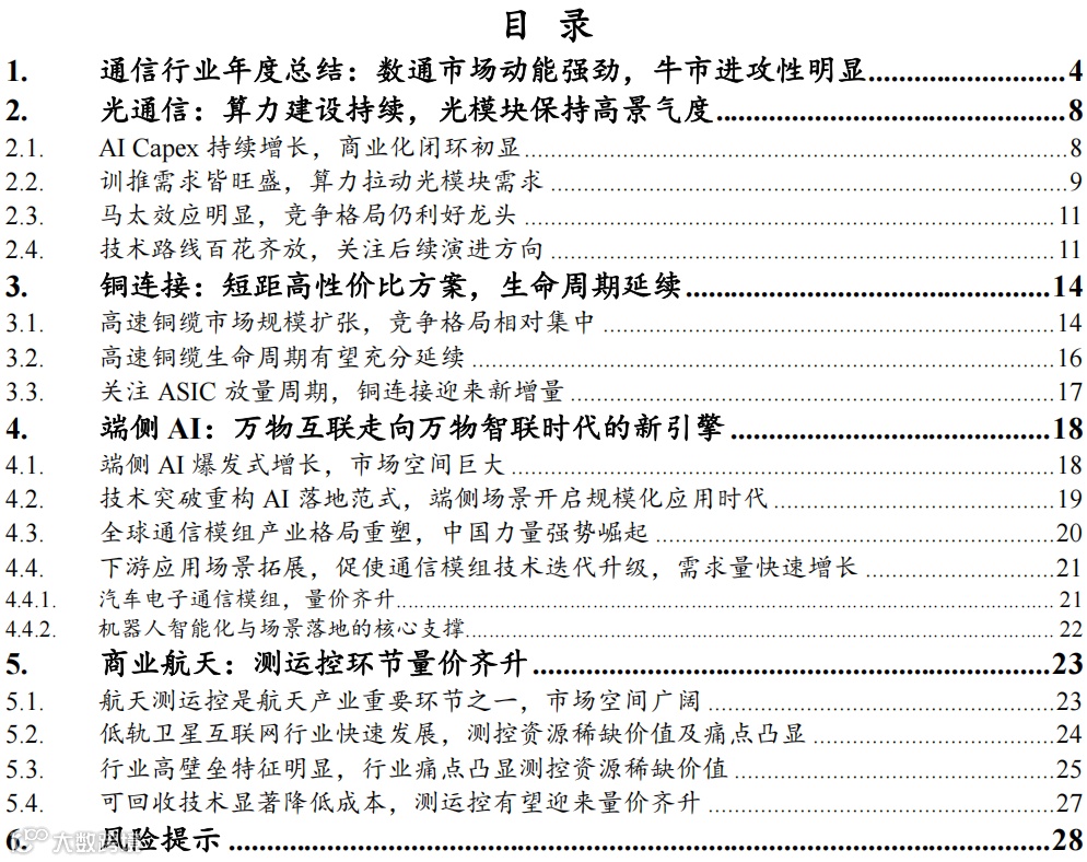 通信行业年度总结:数通市场动能强劲,牛市进攻性明显