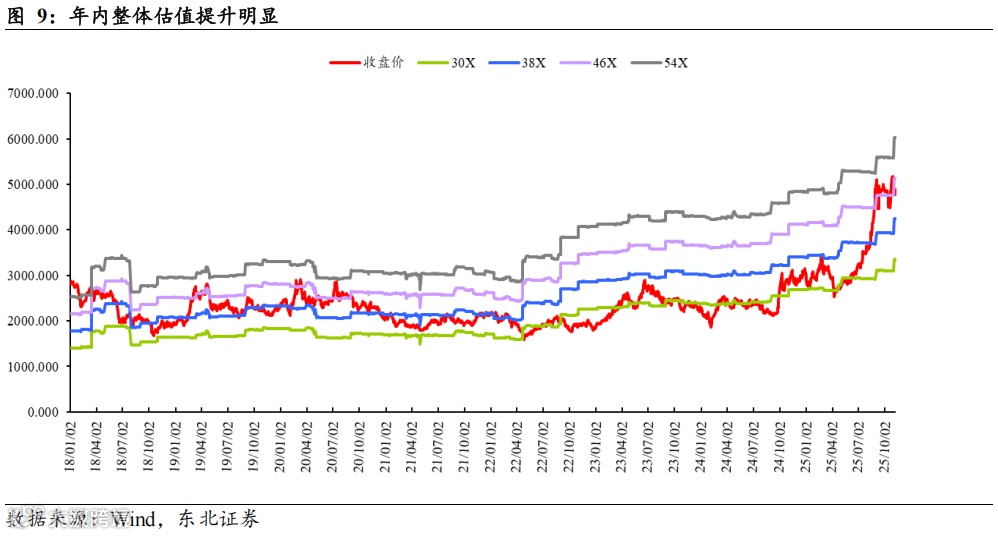 牛市进攻性明显,走势强于大盘。截至2025年11月7日,申万通信指数收盘报4,864.72点,年内累计收益率达63.37%,显著跑赢上证指数(19.27%)、深证成指(28.70%)和创业板指(49.80%)。全年来看,通信指数在4-5月份受中美关税冲突影响较为明显,7-8月表现突出,区间涨幅达48.86%,远超同期上证指数(12.01%)和深证成指(21.32%),超额收益显著。