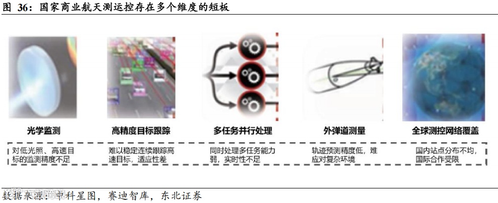 测运控服务配套体系不完善,天地一体化建设任务艰巨。我国测运控的规模发展、技术迭代、资源配置等方面尚与国际领先水平存在差距。从规模发展来看,国内商业测运控公司仍处于早期发展阶段,目前相关企业仅有10余家,整体规模与未来商业航天发展需求不匹配,供需矛盾突出。从技术迭代来看,中国测控技术仍依赖传统模式,缺乏创新和灵活的服务模式。从资源配置来看,国内70余付天线大部分集中在西部和东北地区,覆盖面有限,区域间资源配置不均,且天线口径多在3.7米-7.3米之间,缺乏火箭发射测控所需的光学、外弹道测量和安全控制设备。
