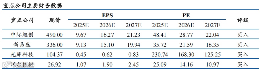 光模块行业马太效应明显,竞争格局仍然利好龙头。随着数据中心速率的提高,内部互连互通兼容性难度提升决定了头部云厂商光模块供应门槛较高。此外,云厂商对光模块的价格变动并不敏感,光模块/光器件采购金额占AI资本开支比例仍然较低,二线厂商价格战策略行不通。同时,龙头光模块厂商不断巩固自己的护城河,掌握最新的技术动向。2026年光模块上游核心物料供应预计仍然紧张,上游光芯片厂商更愿意先出货给订单充足指引明确的客户。