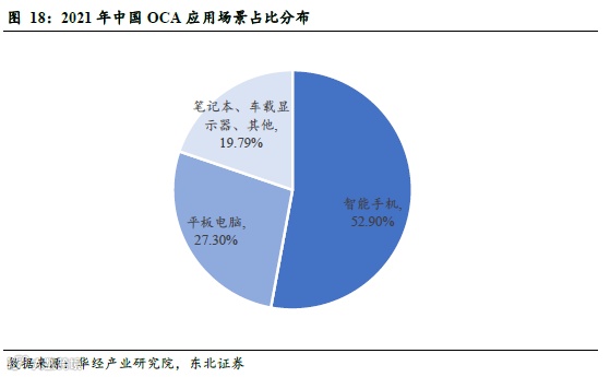 从应用领域分布来看,OCA光学胶的需求高度集中于消费电子领域。以2021年数据为例,智能手机占据中国OCA光学胶应用的主导地位,比例达52.90%,平板电脑占27.30%,而笔记本、车载显示及其他领域合计占19.79%。这一分布反映了智能手机市场对显示效果和轻薄化要求的驱动作用,同时车载显示、大尺寸平板等新兴需求正进一步拓展市场空间。