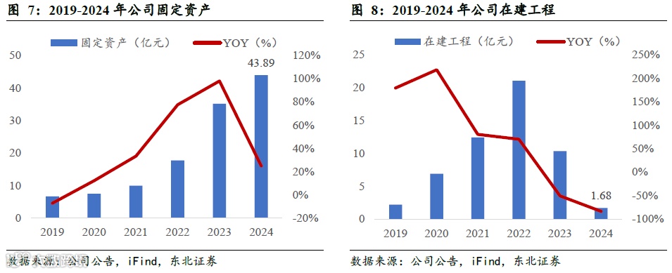 前期大规模资本开支所导致的短期财务阵痛已过,业绩拐点已现。营收方面,2015-2024年,公司营收整体保持增长态势,CAGR为13.4%。收入与利润的背离,主要系公司于2021年至2023年期间进行了密集的资本开支,总投资约40亿元。大规模的在建工程于2023-2024年集中完工并转为固定资产,从而导致公司的年折旧与摊销成本出现大幅增长,拖累公司利润端表现。但我们认为,年折旧额已到达顶峰,2025年Q1-3营收端不断突破新高,业绩拐点已现。