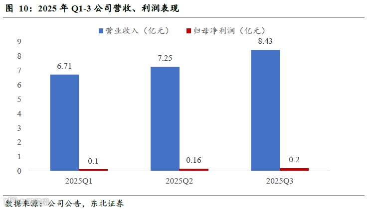 年折旧额已到达顶峰,2025年Q1-3营收端不断突破新高,业绩拐点已现。截至2024年年底,公司在建工程仅剩1.68亿元,同比-83.74%;固定资产规模43.89亿元,同比+24.93%,在建工程转固已基本完成。2025年Q1-3,公司营收持续保持增长,Q1/ Q2/ Q3分别实现营收6.71亿元/ 7.25亿元/ 8.43亿元,2024年,公司单季度营收中枢围绕6.7亿元左右,2025Q2脱离中枢达到7.25亿元,并于Q3进一步增长,确认增长趋势。我们认为,公司受益于高端产品的突破上量,预计2025年Q4有望突破10亿元营收平台,并于全年实现规模盈利。