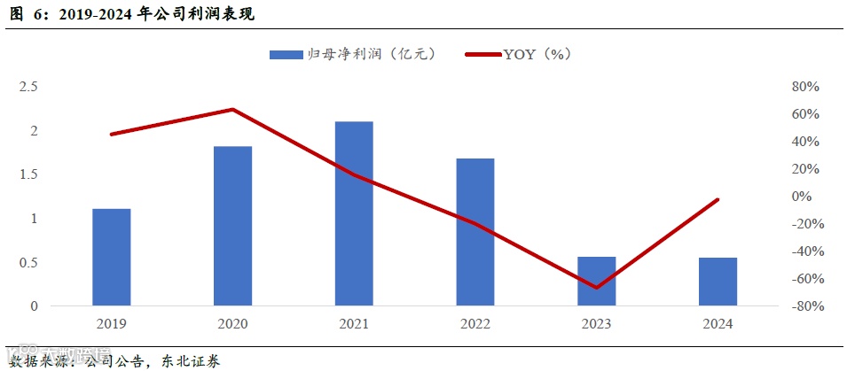 公司营收端保持高速增长,利润端短期承压。2019-2024年公司营收保持增长,由2019年14.33亿元增长至2024年26.91亿元,CAGR为13.43%;其中,2024年公司实现营业收入26.91亿元,同比+36.68%,主要系:1)公司下游市场需求增长;2)公司市场份额持续扩张。同期,公司实现归母净利润0.55亿元,同比-2.11%。收入与利润的背离,主要系公司自2019年确立向高端化、重投入进行战略转型,于2021年至2023年期间进行了密集的资本开支,总投资约40亿元。大规模的在建工程于2023-2024年集中完工并转为固定资产,从而导致公司的年折旧与摊销成本出现大幅增长,从而拖累公司利润端表现。目前公司已实现“PET基膜-离型膜-胶水-功能涂层材料”的全产业链一体化布局,新建产能处于爬坡阶段,盈利能力未来有望呈现爆发式增长。