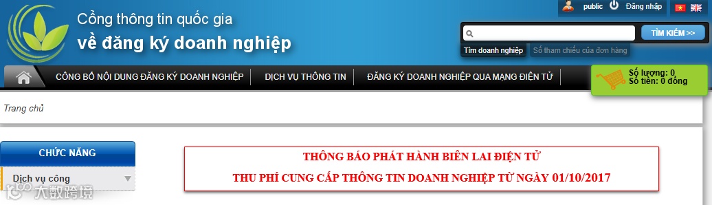 1. 越南国家工商注册局官网