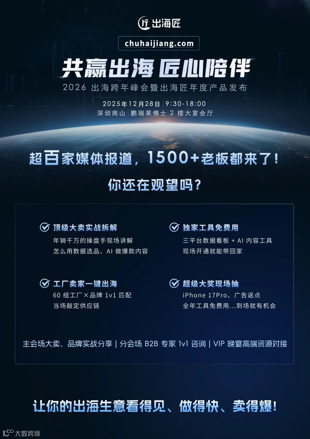 如今,她将带着这套完整的出海策略,在12月16日的2026出海匠发布预热直播与你面对面分享。