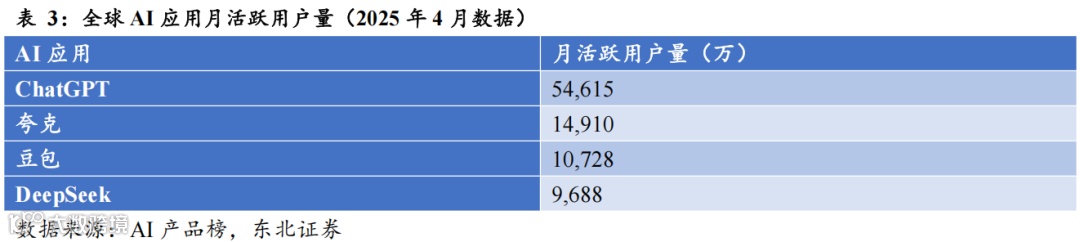生成式AI技术正加速从云端向终端设备渗透,软件+硬件持续迭代,推动端侧产品的功能革新与体验升级。在软件应用层面,AI技术已深度渗透至办公、创意、金融等多个垂直领域,AI应用产品已有不错表现。海外方面,Perplexity自推出以来实现持续增长,月活跃用户已突破1500万;OpenAI推出的ChatGPT Search进一步拓展了其产品矩阵,截至2024年年底,ChatGPT全球周活跃用户已达3亿量级。国内方面,字节跳动旗下的豆包2024年累计用户突破1.6亿,日均新增用户稳定在80万,展现出强劲的增长态势。