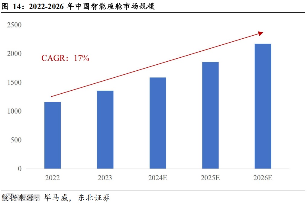2026 年中国智能座舱市场规模将达人民币2127亿元,2022-2026年CAGR超过17%。