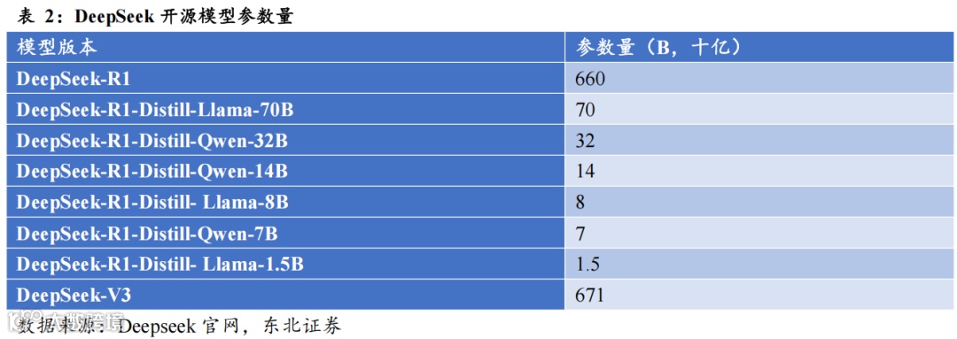 DeepSeek的出现为产业参与格局带去巨大的变革。在过去,端侧AI研发被视作科技巨头的"特权领域",仅微软、谷歌等企业能承担动辄数亿美元的研发投入。如今情况发生根本性转变,1)DeepSeek开创的混合专家架构(MoE)使6710亿参数大模型的单激活参数量仅为370亿,显著降低计算负载与显存占用,让中小企业在消费级硬件上部署大模型成为可能;2)其开源的R1系列蒸馏模型(如1.5B版本)仅需1.1GB内存即可运行,推动AI玩具、智能眼镜等产品的功能智能化跃升。3)DeepSeek提供了一些轻量化及蒸馏模型,针对参数量更小的场景。