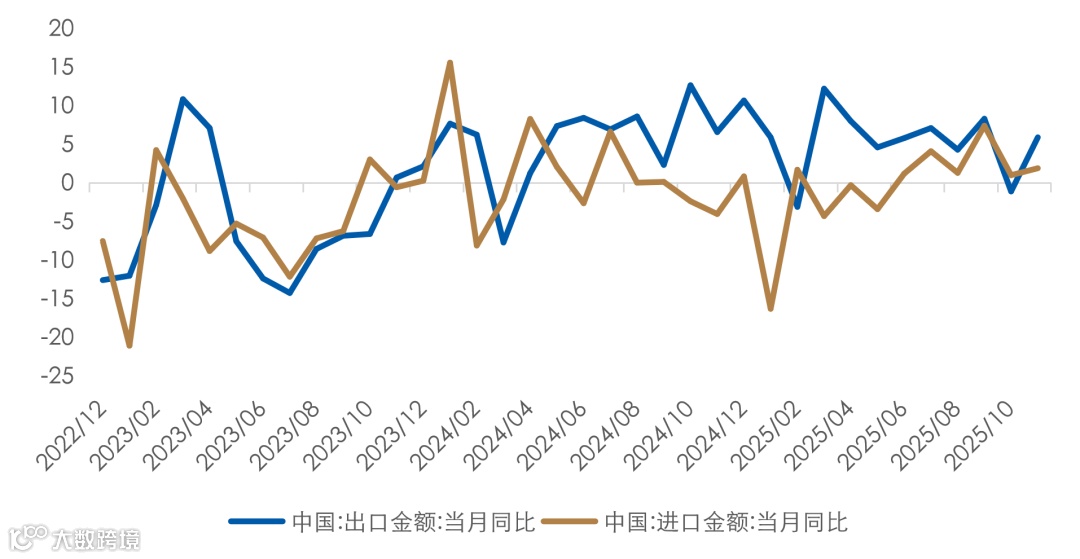 11月出口同比增速5.9%,超预期(预期4.0%,前值-1.1%);进口同比增长1.9%(前值1.0%);贸易顺差1116.8亿美元,高于预期(1031.0亿美元)及前值(900.7亿美元)。CPI同比上涨0.7%,为2024年3月以来最高;核心CPI回升放缓;PPI同比降幅扩大至2.2%,反映工业需求仍显疲弱,“反内卷”与供给侧优化紧迫性上升[5]。