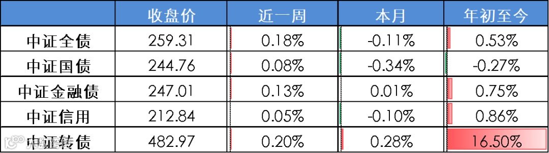 重要会议释放宽松货币政策与财政政策信号,利率债收益率整体下行;信用债收益率普遍下行,信用利差走势分化;可转债跟随正股震荡收涨[2]。
