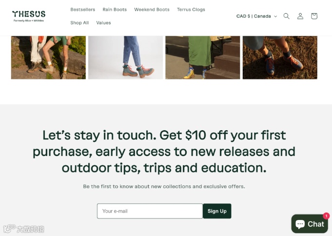 当导航到 Thesus 网站时,Pinterest 访问者可以选择订阅该品牌的电子邮件。 忒萨斯户外活动