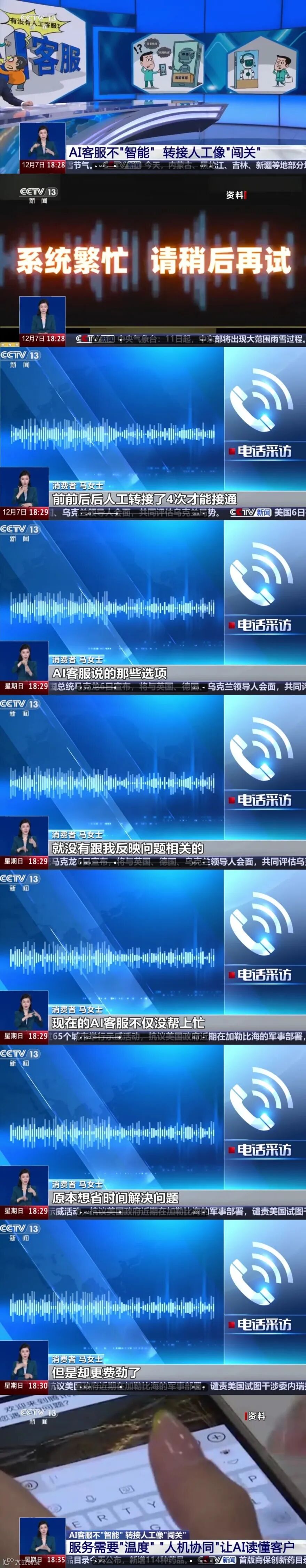 近日,央视新闻的记者实测10多家平台客服,发现“AI客服不智能、转接人工像闯关”的现象比比皆是。