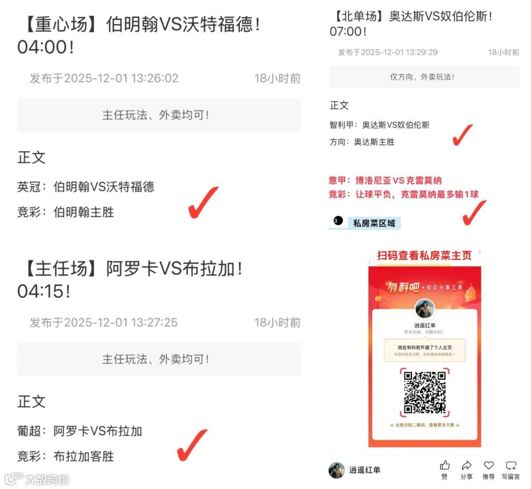 恭喜公开课2连好评,近5中4再次回到了熟悉的感觉,如昨天所讲,博洛尼亚的热度太过集中,尽管上半场由奥尔索里尼打进一粒点球找回点颜面,但随着瓦尔迪的伤口散盐,博洛尼亚只能吞下苦果,面对微雨条件,球队终结能力欠佳的问题暴露无遗,昨晚尽管主任场次不多,但重心伯明翰主胜顺利打出,虽然巴列卡诺被逼平,但布拉加方向没有悬念,另外北方菜中奥达斯主胜也顺利拿下,超重心被玩丢相当窝火,今晚有英锦赛,兄弟们还需多多留心,除了德国杯和意大利杯外,巴萨VS马竞,纽卡VS热刺这两场反倒看点十足,并且都是单关,公私推继续加油!