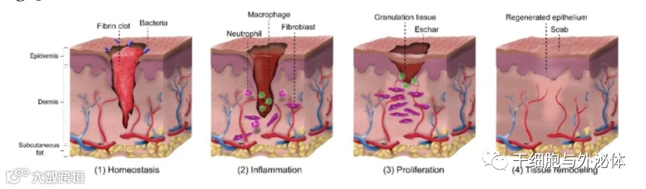 伤口愈合包括止血、炎症、增殖与重塑四个阶段。慢性伤口常因炎症持续或修复机制受阻而难以愈合,现有疗法难以实现功能性再生。