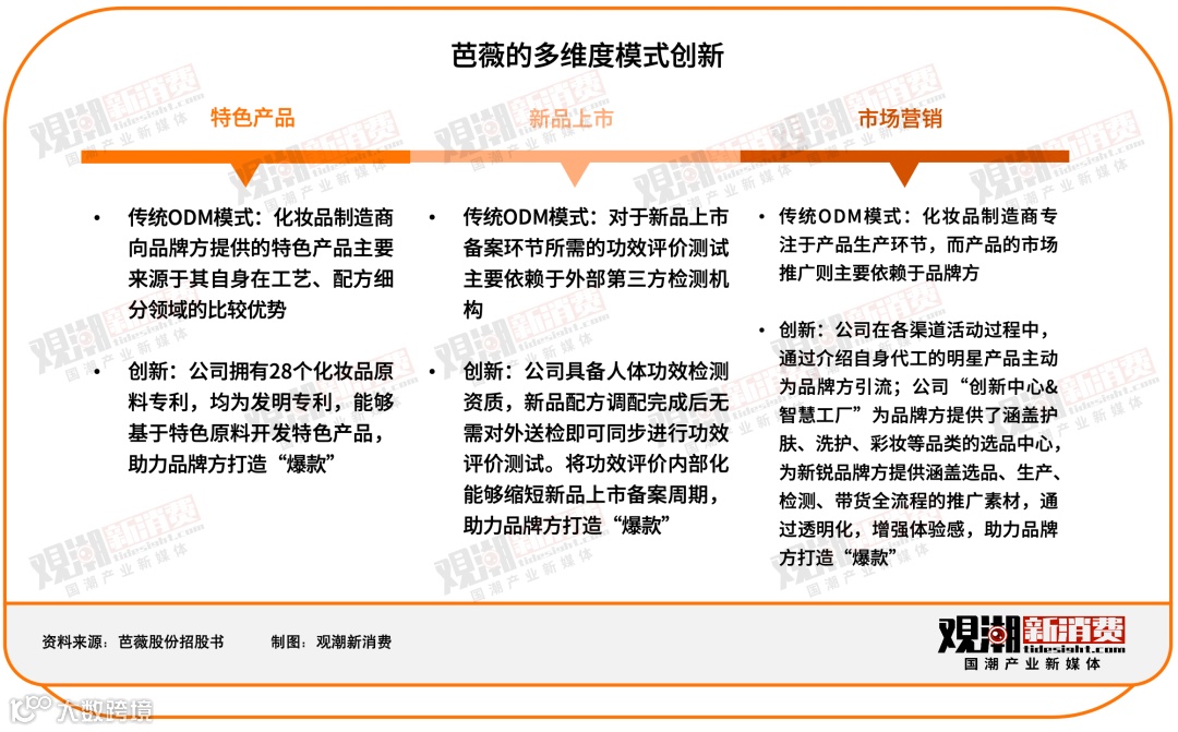 代工企业的技术能力也在持续升级。以芭薇为例,2023年上半年研发投入达8915.78万元,占营收6.36%。公司拥有授权专利129项,其中发明专利112项,自主研发配方超6000项。其具备人体功效检测资质,可实现研发与检测同步进行,大幅提升产品上市效率。