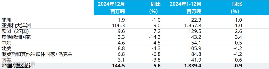 中国产量同比增11.8%,亚洲和大洋洲整体表现亮眼