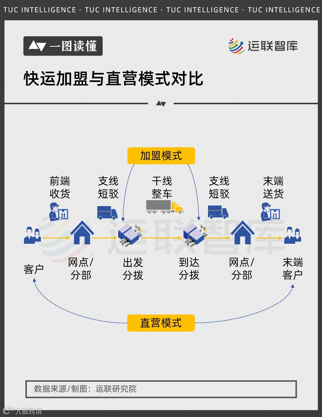 从2010年开始,市场出现了一批以安能物流、百世快运为代表的加盟制快运企业。直到2015年,老牌直营快运企业德邦、华宇开始开放加盟业务。2016-2017年,以加盟制为代表的“通达系”快递开始进军快运领域。