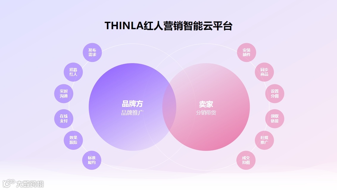 旗下Thinla海外红人营销智能云平台汇聚了全球2100万红人资源,17种筛选项,数百种主题标签,可以精准筛选适配品牌的优质红人,链接红人成本低至0.1美元。平台功能涵盖自动化Campaign管理、分佣系统Promotion以及按需收费的Search Influencers服务,基于大数据模型智能匹配红人与品牌,精准匹配商品特性与红人的营销能力,让品牌的海外营销更具效果。