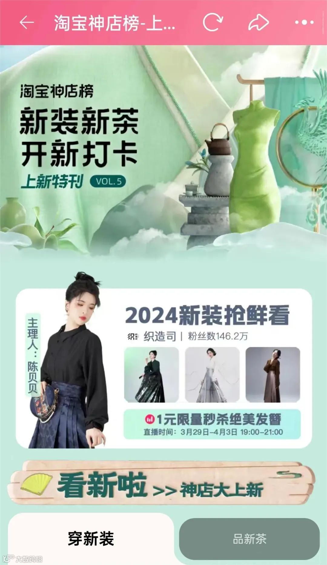 在淘宝神店榜与众多特色中小商家的共同努力下,“新衣配新茶”凭借独特的中式美学,成为了这个春天不容忽视的一个消费新热点。