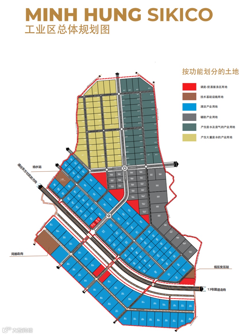 越南明兴-Sikico工业区位于平福省汉管县同呢乡,第一阶段规划面积655公顷,由明兴Sikico股份公司投资建设。作为平福省唯一允许接纳产生废水和废物产业的工业区,园区在产业布局上具备独特优势,致力于打造“绿色工业-贸易-服务复合模式”的可持续发展园区。