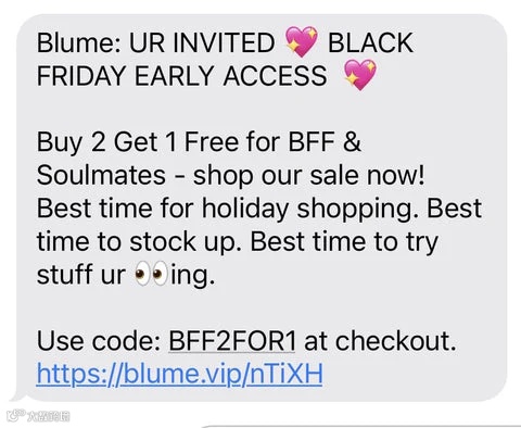 6. 黑色星期五/网络星期一短信利用购物节热点发送时效性强的促销信息,激发紧迫感,推动用户在活动结束前下单。