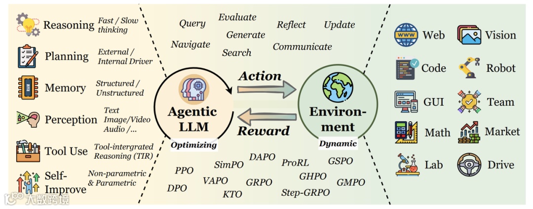 Agentic RL,将 LLMs 从静态文本生成器重构为具备"感知→规划→行动→反思"闭环能力的动态自主智能体。