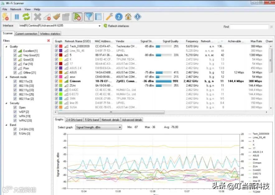 1、电脑或者手机下载WiFi分析工具,扫描家中信号情况后,选择路由器空闲信道对WiFi进行调整,2.4GHz频段优先选择1、6、11三个非重叠信道;5GHz频段则优先选择149、153、157、161、165信道。