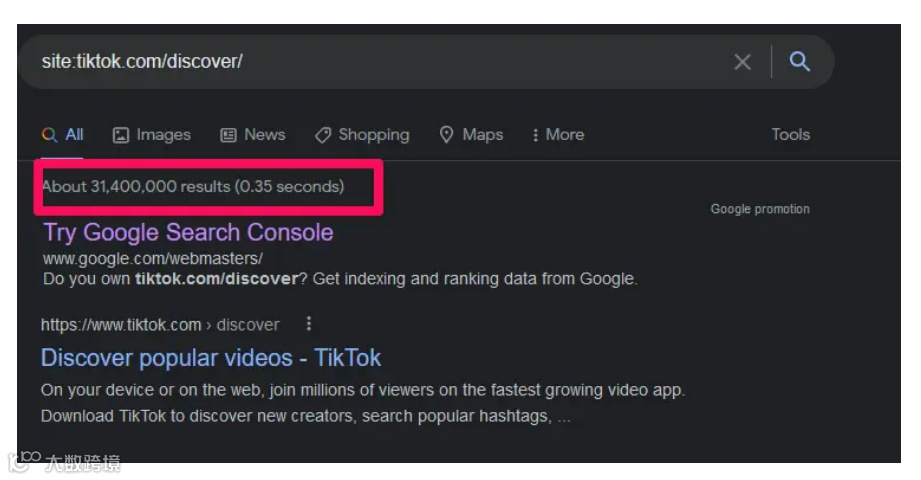 TikTok网站收录页面超过了3100万个,主要根据主题、标签和音乐进行程序化构建: