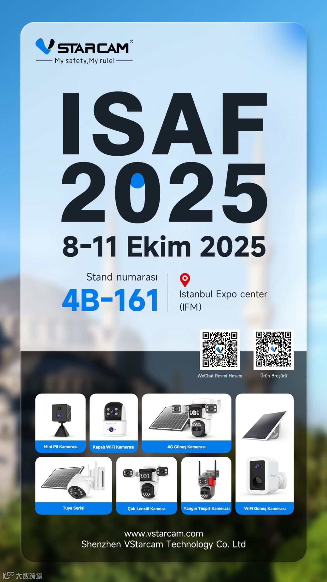 随着新机场建设、交通枢纽升级、港口扩容及城市数字化改造,对“长时稳定运行+低能耗管理”的安防方案需求激增。在此背景下,ISAF 2025(土耳其安防及消防展览会)将于 10 月 8–11 日在伊斯坦布尔举办,预计吸引 26,000+ 专业观众,覆盖政府、系统集成商、分销渠道与终端用户。