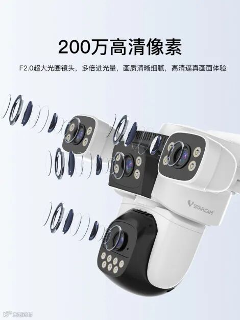 双镜头双云台:上下左右独立旋转,看护多个区域。