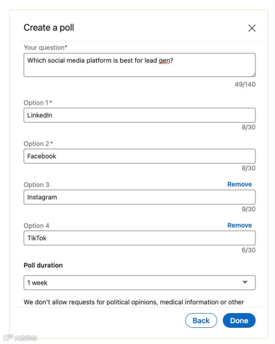 无论投票结果是意料之中或意料之外,都可以作为打开交流之门的钥匙。换句话说,你能根据客户正遇到的问题或关注者感兴趣的话题来发布领英动态。