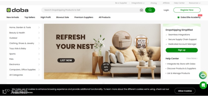 Doba于2002年上线运营,是美国老牌Dropshipping一件代发平台,对接Amazon、eBay、Shopify、Bigcommerce、Woocommerce等主流电商平台,拥有成熟的中美供应链体系,为各类平台卖家提供70万+优质真实海外仓现货商品一件代发服务,解决卖家选品难、资金有限、海外仓服务门槛高、售后难等系列经营问题。