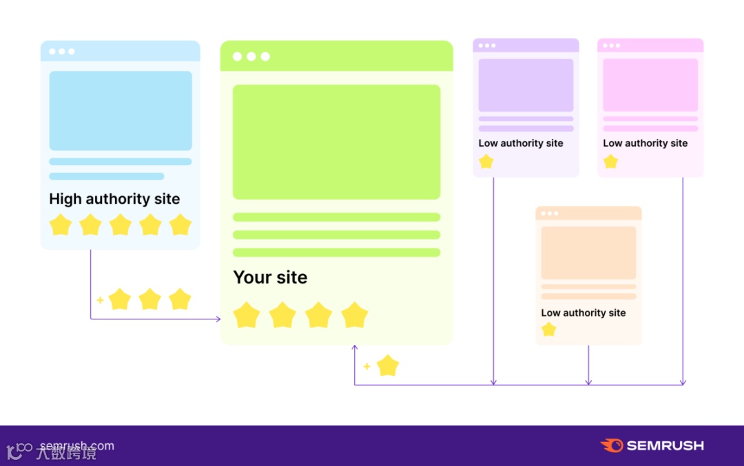 一般来说,来自高权威网站的1个外链比来自不相关、低质量网站的100个反向链接提供更有力的排名支持。