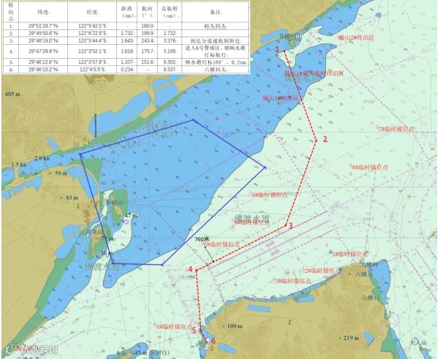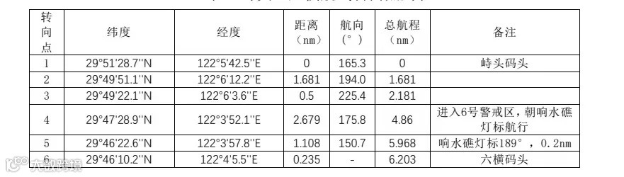 优化后的“峙头-六横”航线总航程从6.537nm缩短至6.203nm,航行时间约减少3分钟。新航线转向点更少,客船操作更为便捷。