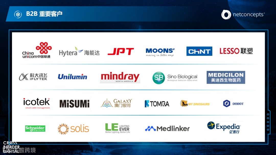 凭借卓越的营销运营服务能力、持续创新能力和强大的品牌综合实力,Cross Border Digital已经为众多头部客户提供了整合营销方案,其中包括:中国联通、海能达、正泰、JPT、科大讯飞、联塑等,并受到了合作伙伴的一致认可。
