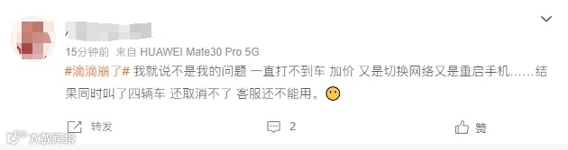 从各平台上的反馈来看,此次滴滴平台在接单、定位、计费等环节上都出现了问题。