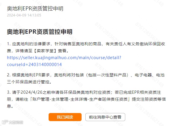 近日Temu平台发布奥地利EPR资质管控申明,要求卖家在4月26日之前申请各环保品类奥地利对应资质