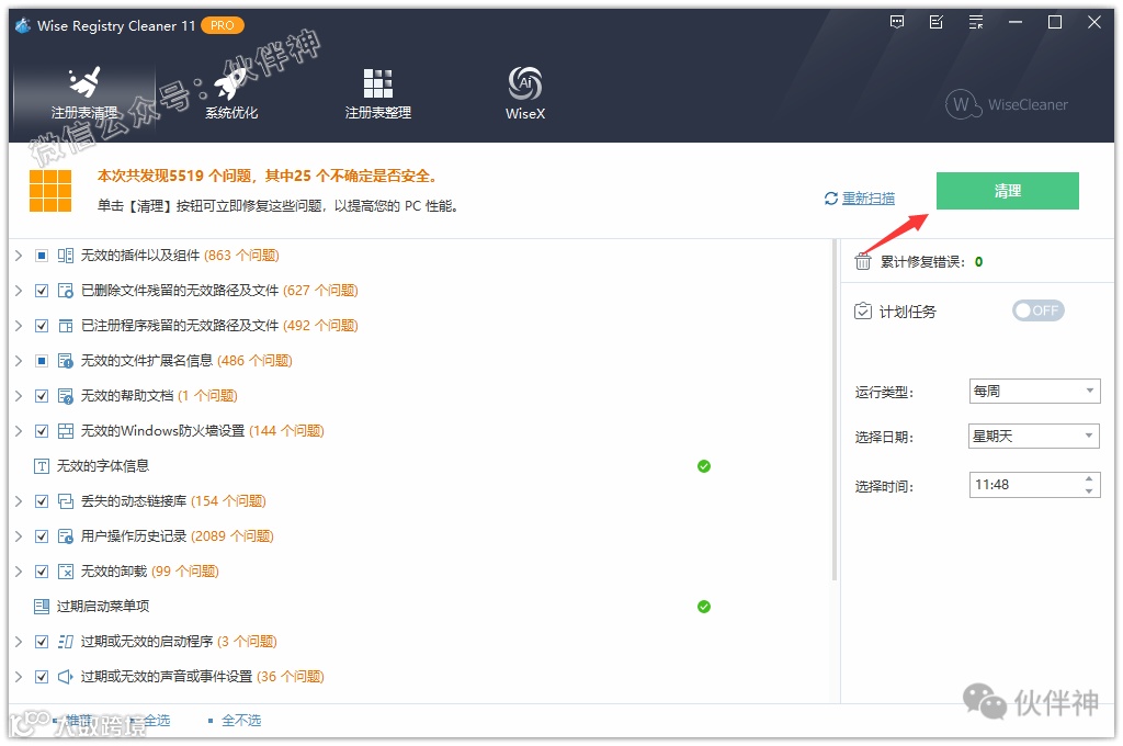 Wise Registry Cleaner是一款功能强大的注册表清理工具,可以帮助用户清理Windows注册表中无效、损坏或过时的条目,从而优化系统性能并提高计算机的稳定性。除了清理Windows注册表之外,还可以优化相关系统设置,以提高系统速度和网络速度。