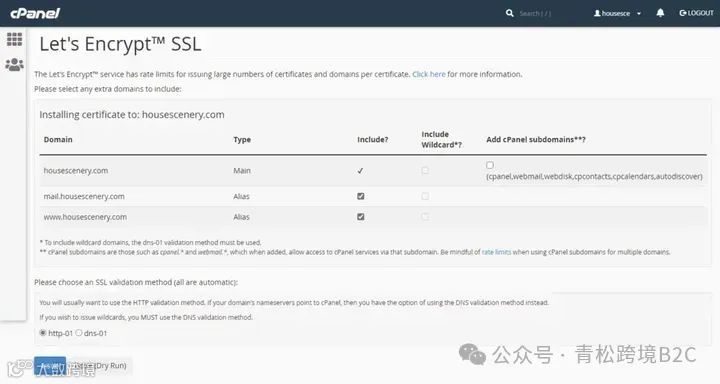 2. 在证书申请页面,选择目标域名。若存在子域名(如blog.xxx.com),需单独申请。勾选需包含的子域名(如mail等),确保域名已正确解析。