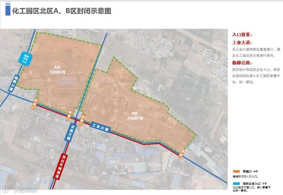 化工园区南区(先期封闭)B区:南至幸福大道,东至规划经八路,西至经七路,北至规划化工园区边界。
