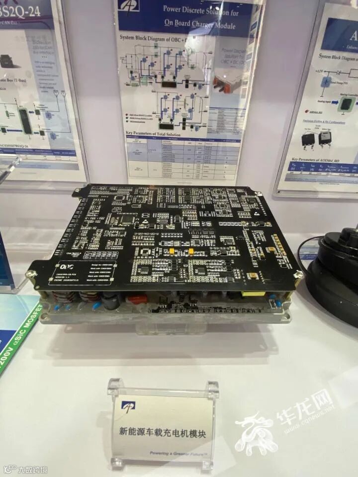 万国半导体展出的新能源车载充电机模块。华龙网佘振芳 摄