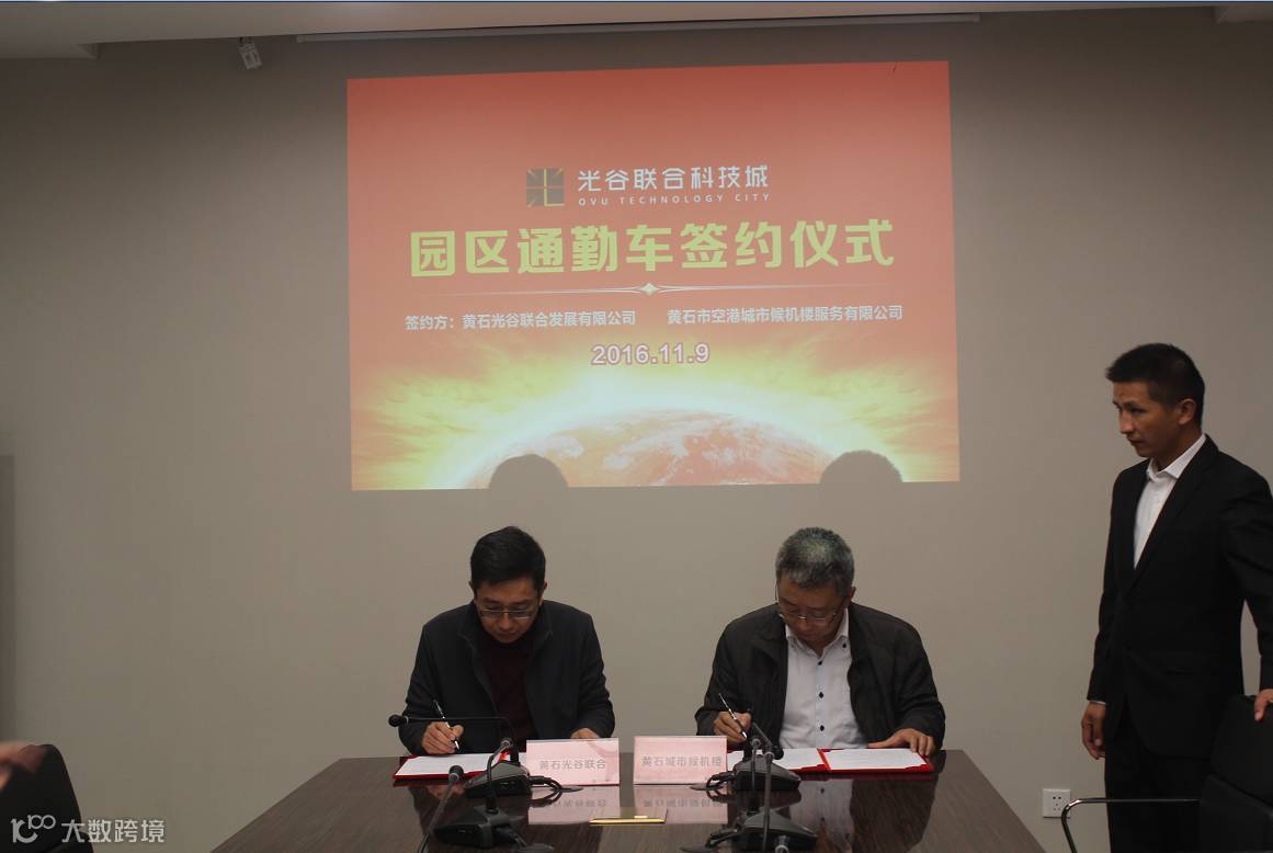 11月9日上午,黄石光谷联合发展有限公司与黄石空港城市候机楼服务有限公司正式签订合作协议,签约仪式在一楼会议室举行,黄石城市候机楼总经理吕相健、黄石公司总经理陈大斌等领导参加此次签约。