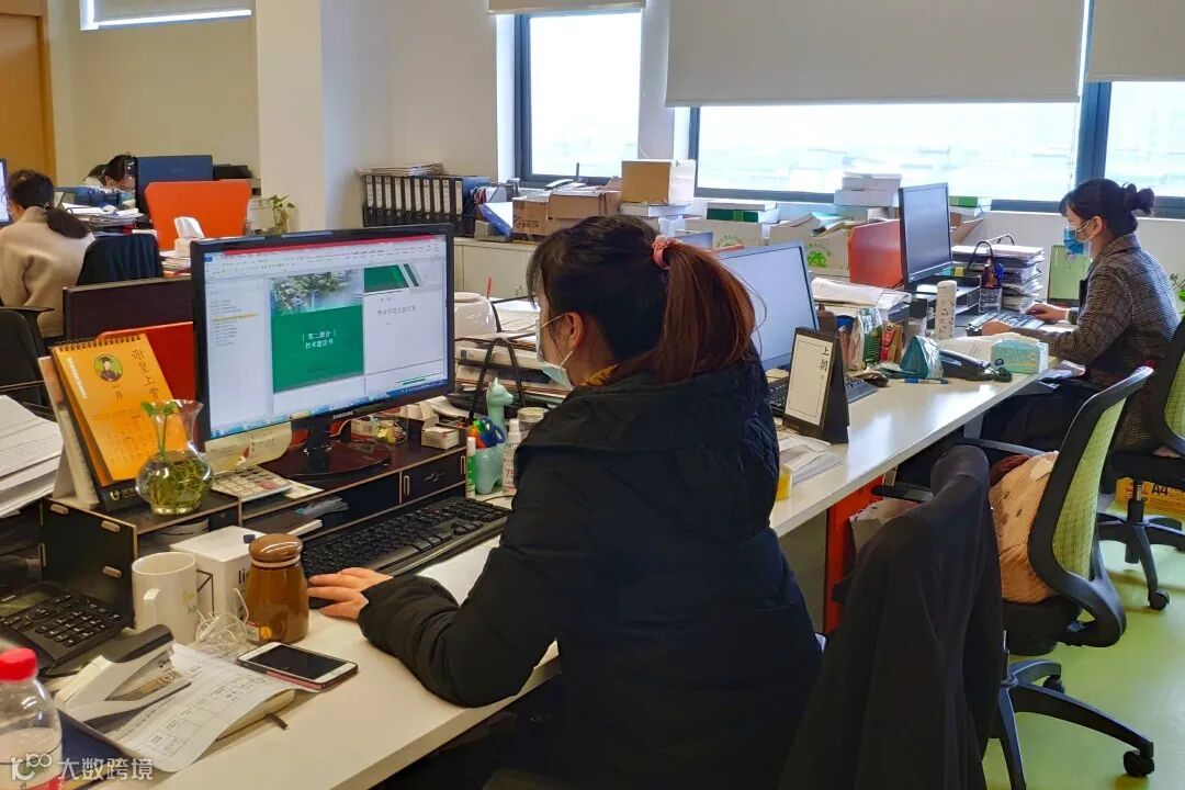 为减少人员聚集,员工不仅分批次复工,每个楼层、每个部门办公的人数也严格控制。小伙伴之间交流探讨工作提倡使用网络、微信、电话交流,减少开会聚集,多开视频会议。