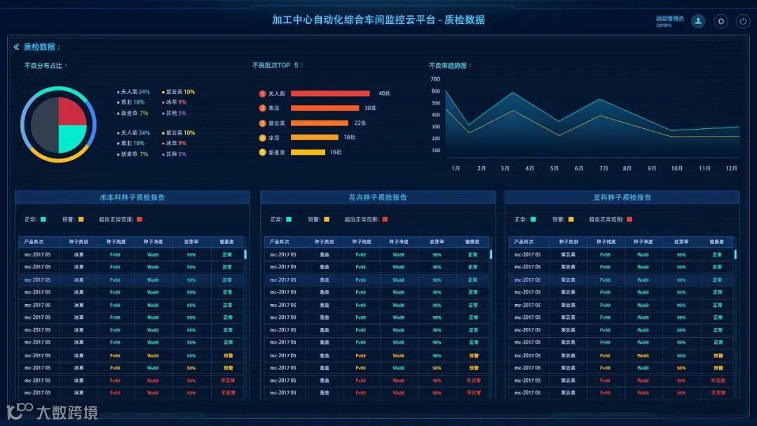 车间可视化管理平台,利用可视化技术可对生产车间的信息进行可视化管理,方便相关人员能及时了解当前生产线、生产进度、直通率、不良率等等与生产相关的信息,从而提高整个车间的生产效率。